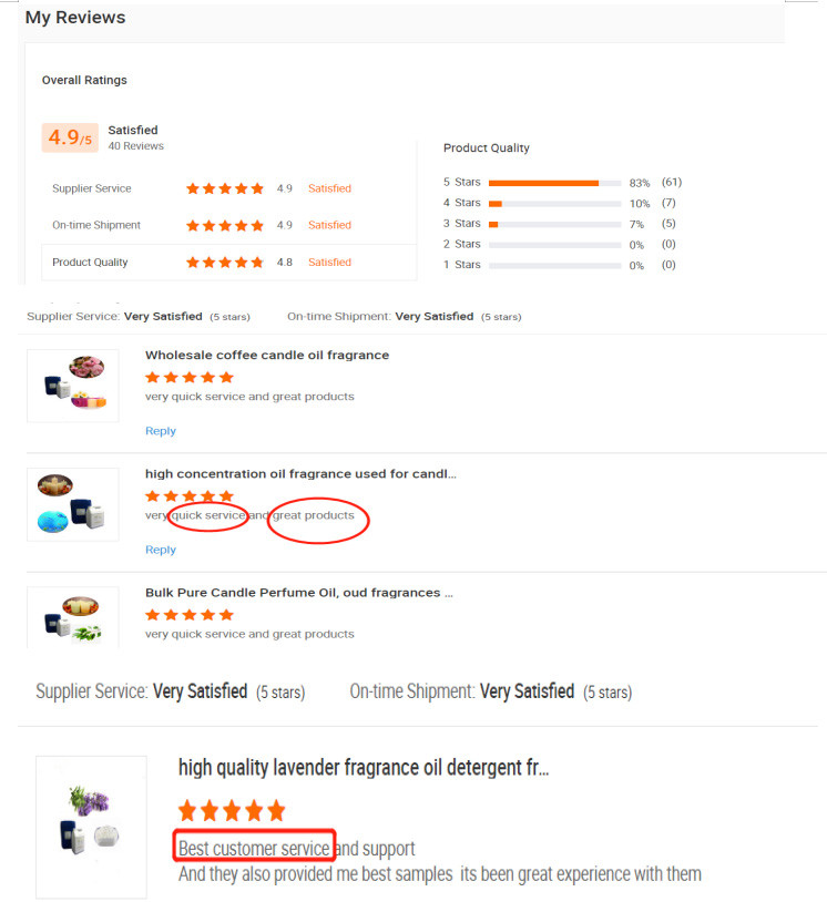 Wir verstehen die Bedürfnisse des Marktes und sind stets in der Lage, unseren Kunden die neuesten Produkte mit guter Qualität anzubieten. Die Zufriedenheit unserer Kunden ist uns von größter Bedeutung. Hilft Kunden, Geruchssymbole aufzubauen, und "Duft" hilft "Verkäufen". Geben Sie den Verbrauchern mehr wunderbaren sensorischen Genuss und machen Sie das Leben erfrischender. Wir hoffen, mit Ihnen zusammenzuarbeiten, uns gemeinsam weiterzuentwickeln und uns in eine bessere Richtung zu bewegen!!!